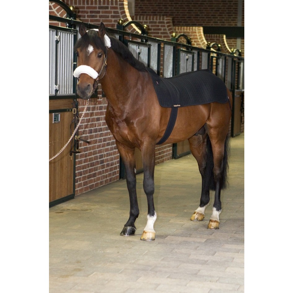 Le Back Warmer Royal a une forme anatomique. Il se compose d'une enveloppe extérieure en coton et un côté intérieur du matériau Welltex®. Deux anneaux d'attache permettent de fixer le collier Back Warmer (vendu séparément). Dispose également de passant pour surfaix ce qui permet de l'utiliser en longe. Ne convient pas pour utiliser monter. Une taille 80 x 105 cm