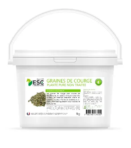Les graines de courge sont sources de cucurbitacine, un acide aminé naturel permettant de soutenir les défenses naturelles contre les parasites internes. Riches en protéines (presque 30%) et en fibres, elles sont très nourrissantes et énergisantes et permettent également d’éviter les constipations.