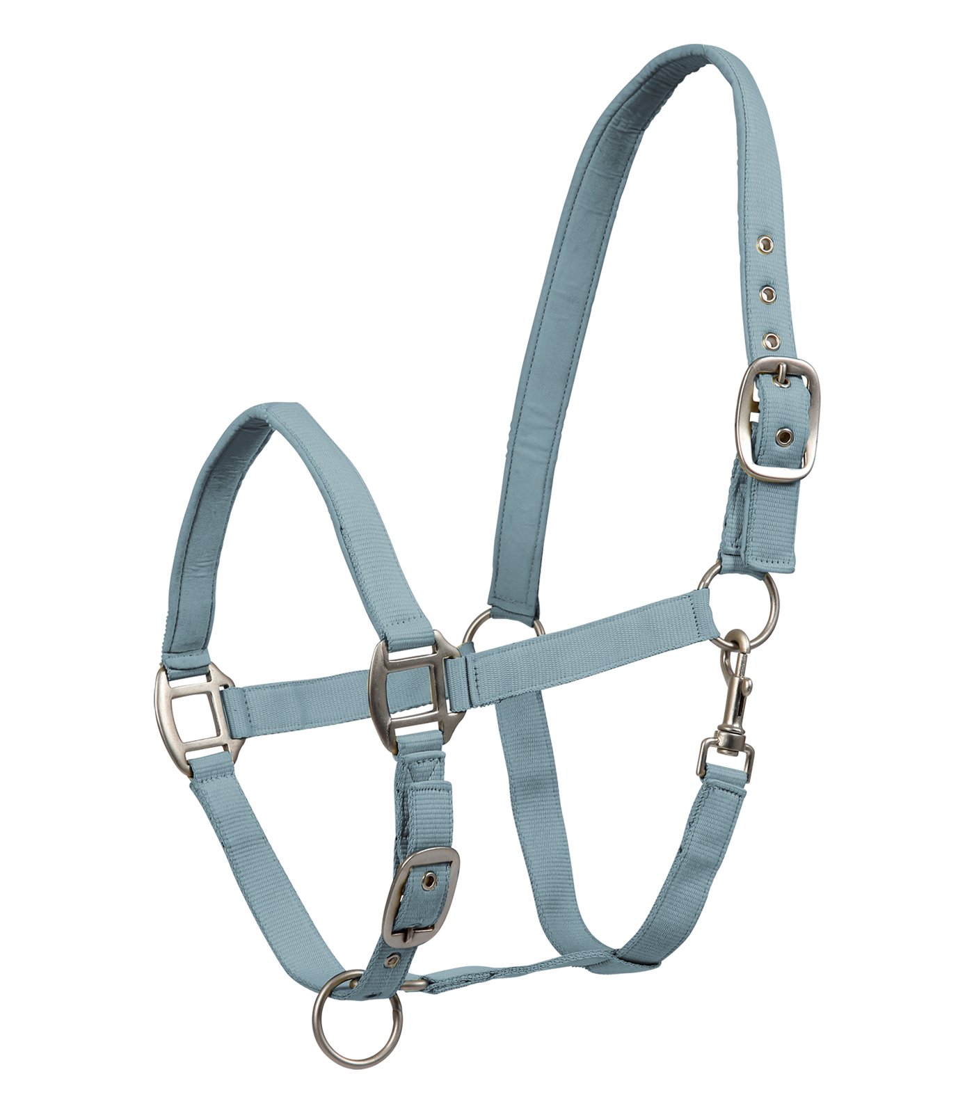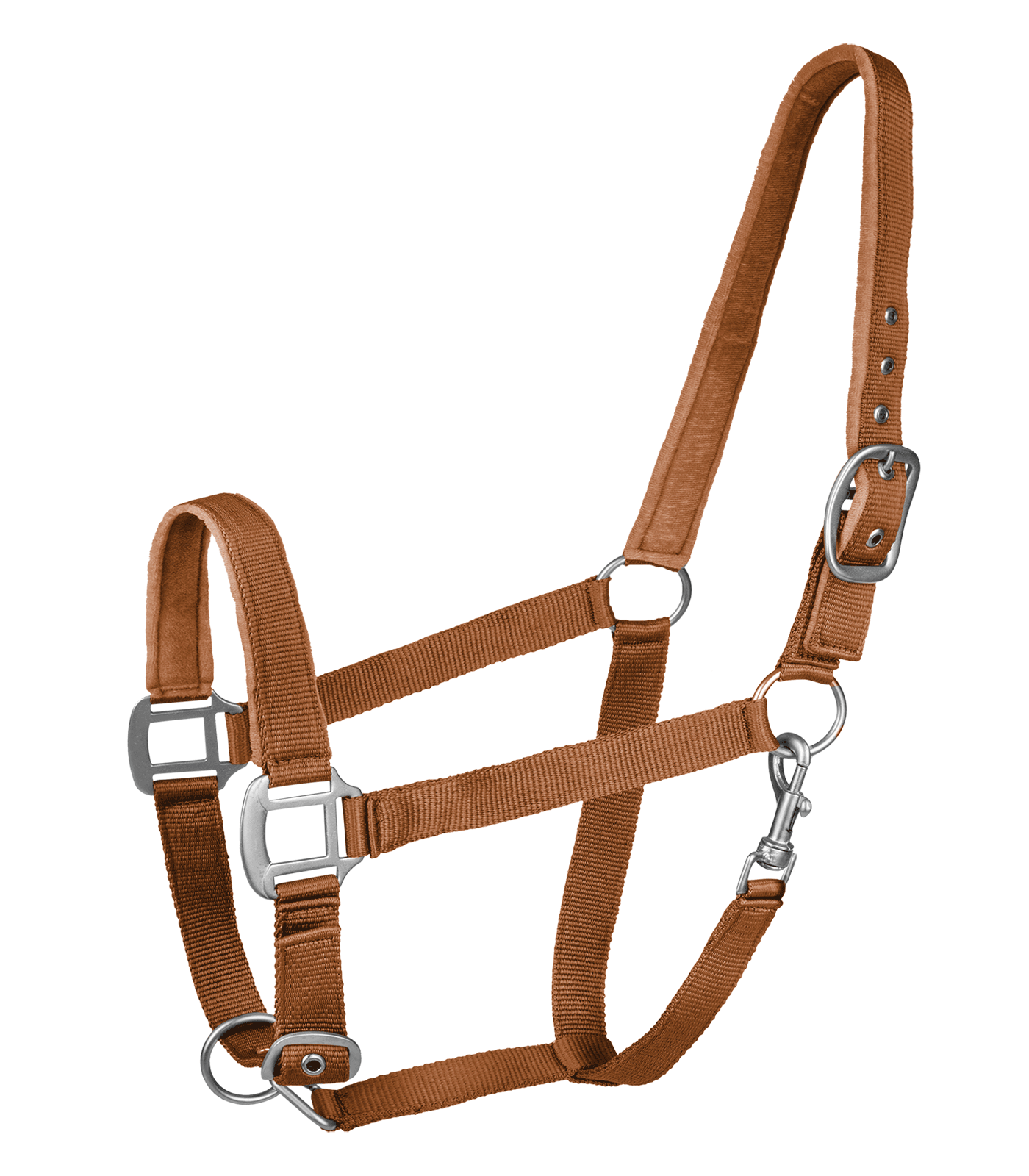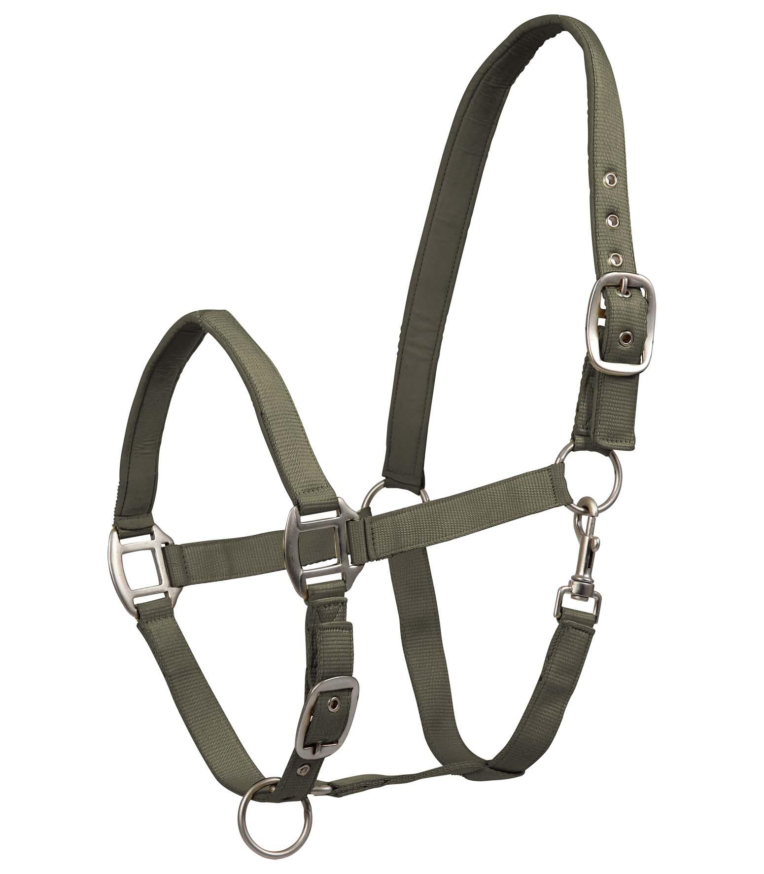 Licol doublé doux ajustable. Bouclerie mate robuste. Nous recommandons les longes de licol assorties 5002 et 5006.